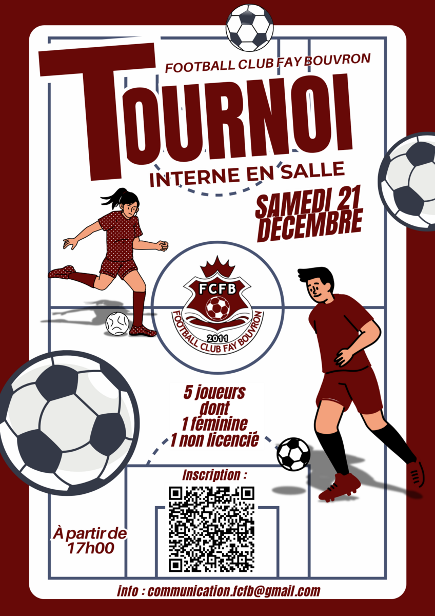 Venez participer à notre tournoi interne en salle , le samedi 21 Décembre à Bouvron.